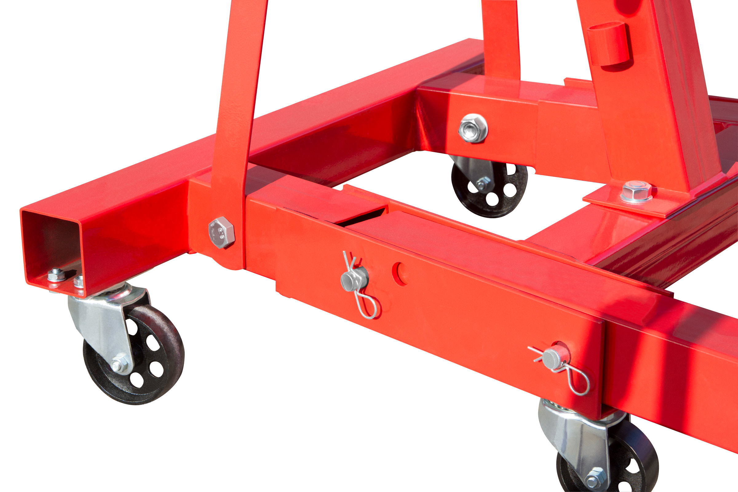 Rollen drehbar so das der Motorheber leicht in jede Richtung bewegt werden kann.